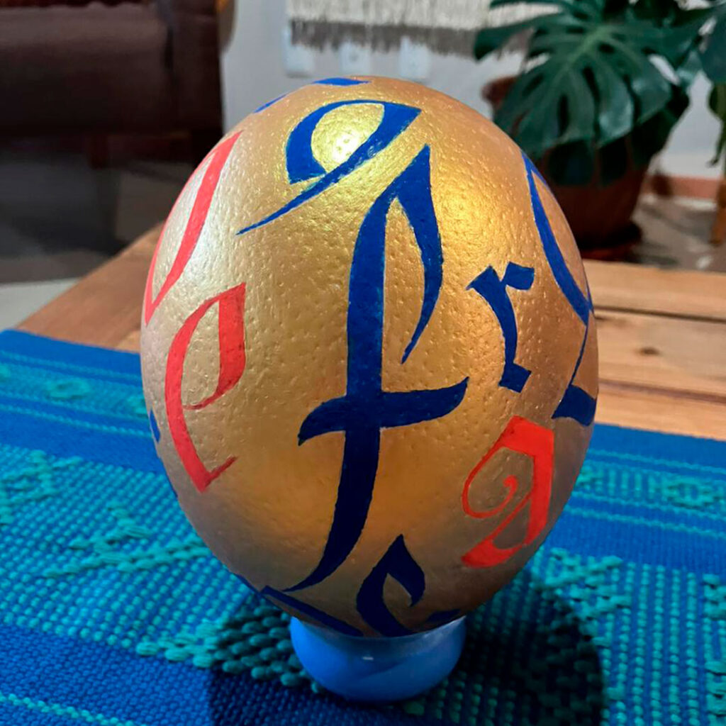Un taller único donde la tradición artística se posa sobre la superficie más inesperada: el huevo de avestruz.